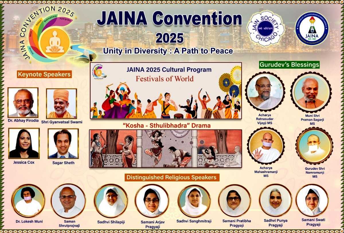 उत्तरी अमेरिका में जैन समुदाय के सबसे बड़े संगठन फेडरेशन ऑफ जैन एसोसिएशन इन नॉर्थ अमेरिका (JAINA) के साल 2025 के Convention की तारीखों का ऐलान हो गया है। यह आयोजन 3 से 6 जुलाई तक शिकागो, इलिनॉय के शॉम्बर्ग में होगा।