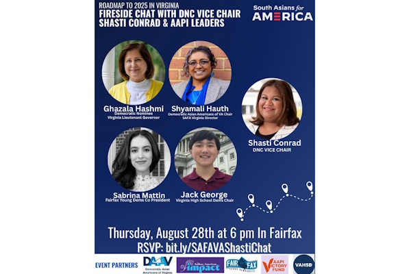 साउथ एशियंस फॉर अमेरिका के इस कार्यक्रम में गजाला हाशमी, DNC की उपाध्यक्ष शास्ती कॉनराड समेत AANHPI के प्रमुख सदस्य शामिल हो रहे हैं।