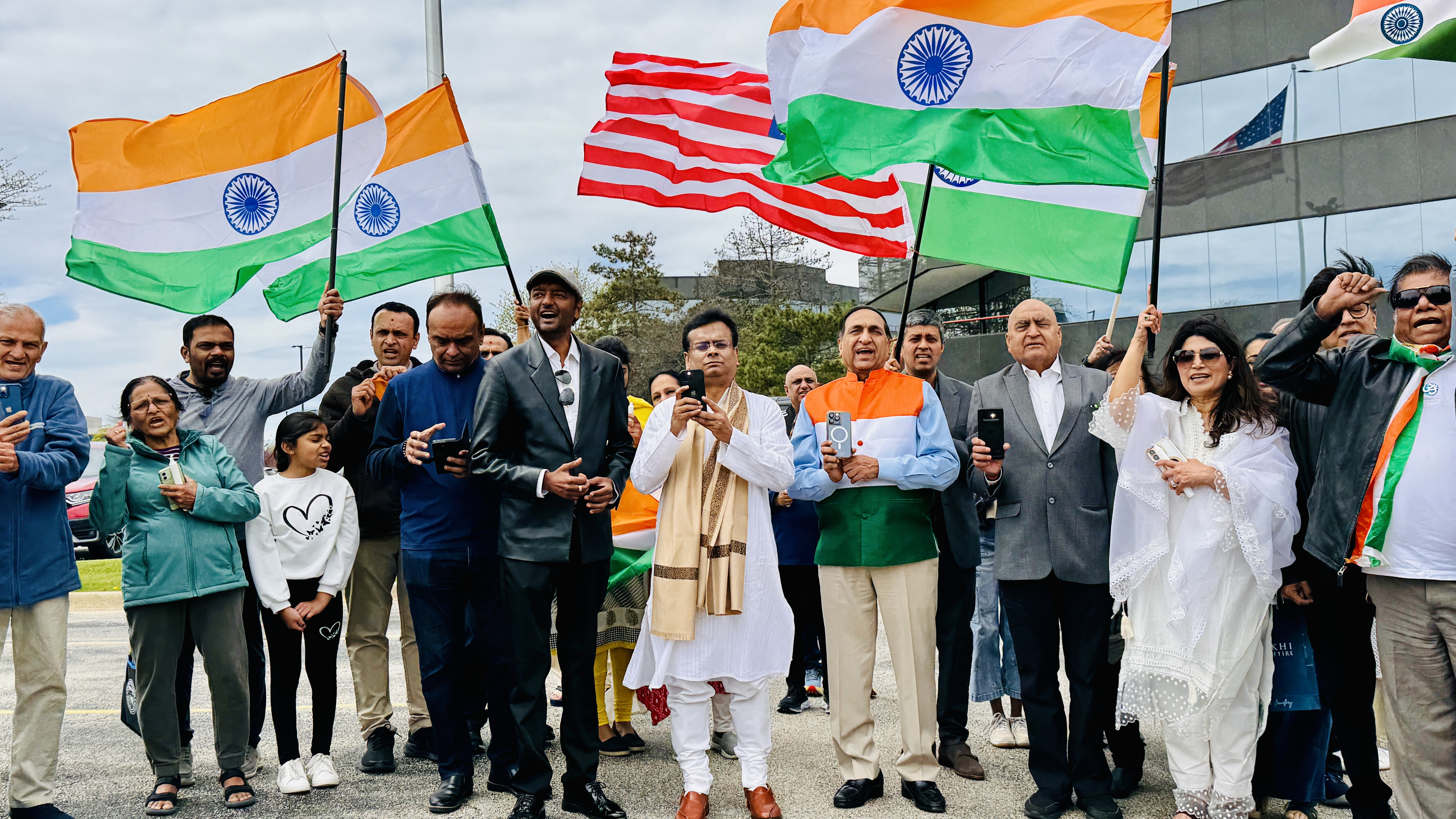 भारत-अमेरिका के संयुक्त झंडों के नीचे एकजुट मार्च