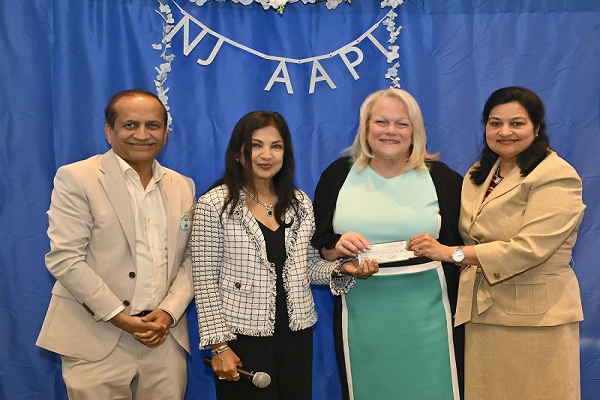 एनजे एएपीआई ने आरडब्ल्यूजेयूएच/समरसेट स्वास्थ्य सेवा फाउंडेशन को उनके भारतीय चिकित्सा कार्यक्रम के लिए आभार के प्रतीक के रूप में एक चेक भेंट किया।