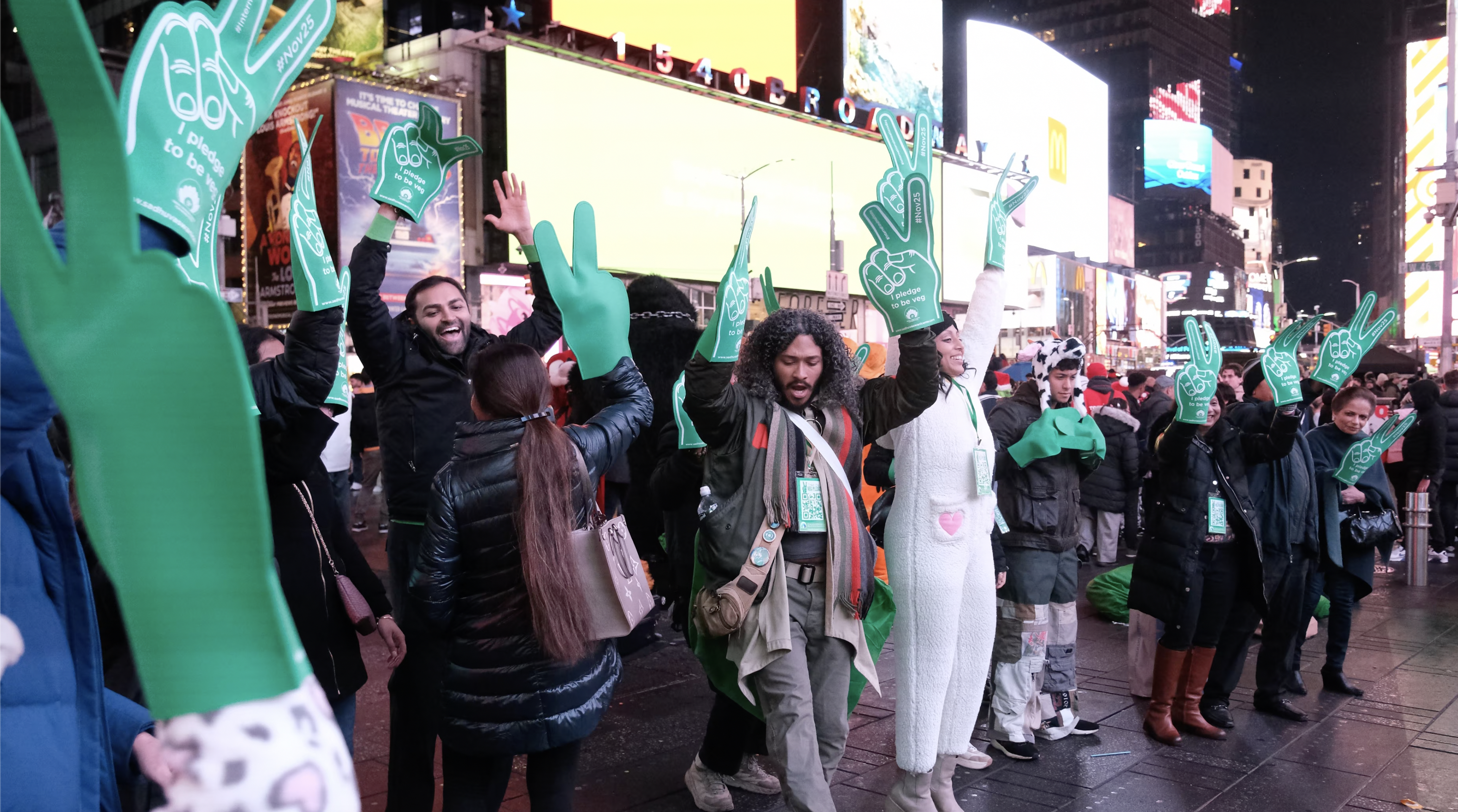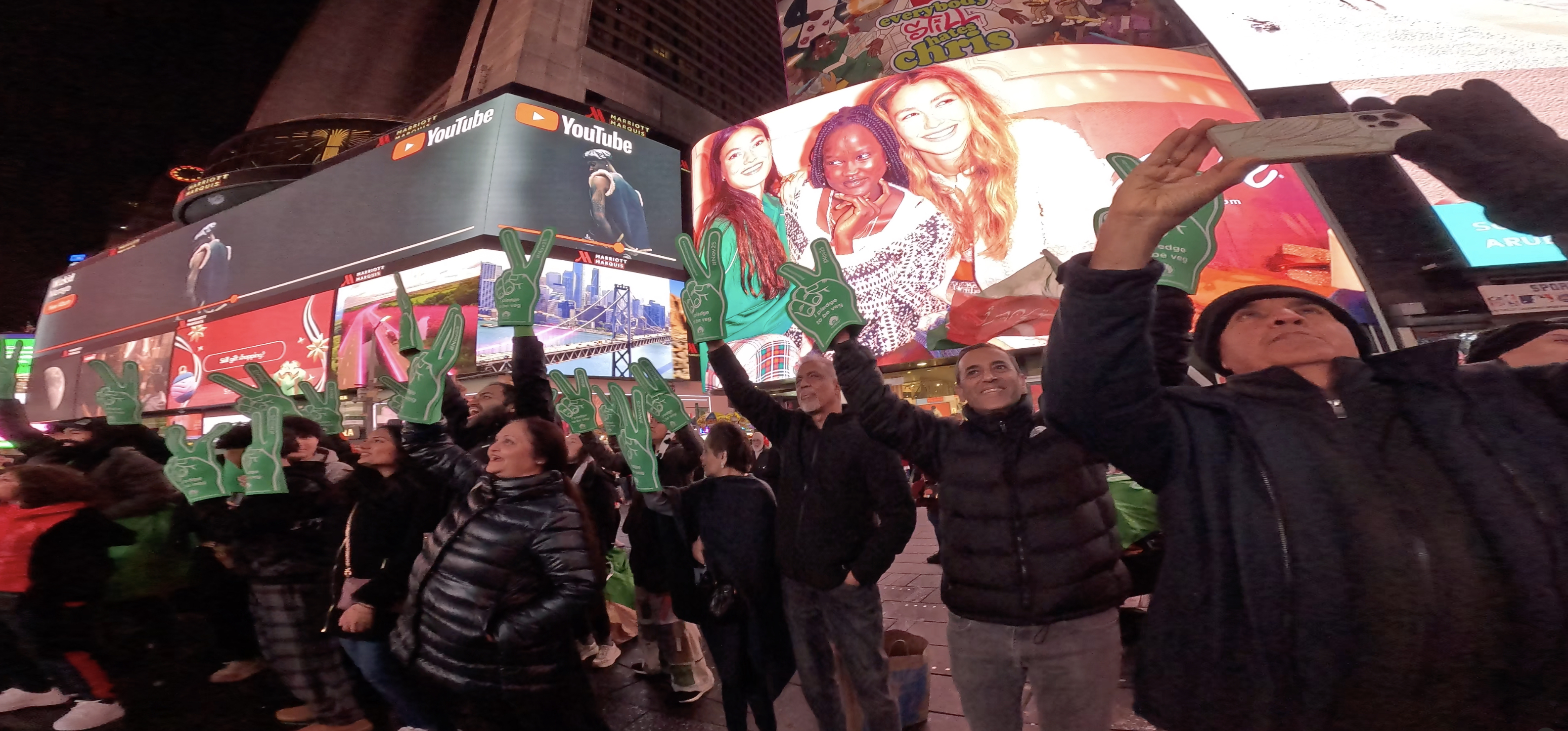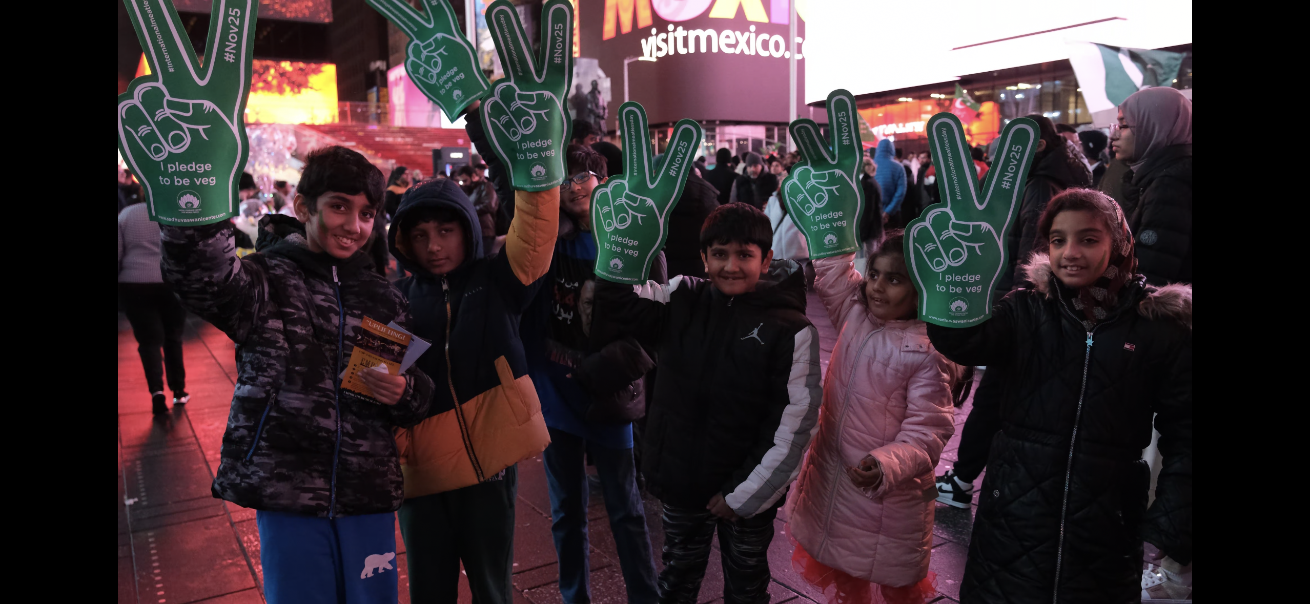 न्यू यॉर्क शहर की हलचल भरी सड़कें करुणा, स्थिरता और एकता के एक शक्तिशाली संदेश में बदल गईं। ग्रीन हैंड्स मूवमेंट ने चेल्सी मार्केट, मीटपैकिंग डिस्ट्रिक्ट, लिटिल आइलैंड और टाइम्स स्क्वायर जैसे जगहों पर अपना दबदबा बना लिया। साधु वासवानी सेंटर फॉर वर्ल्ड पीस द्वारा आयोजित इस अभूतपूर्व अभियान ने हजारों न्यू यॉर्करों से 25 नवंबर को मनाए जाने वाले अंतरराष्ट्रीय मांस रहित दिवस के सम्मान में 'टेक द वेज' का आग्रह किया।