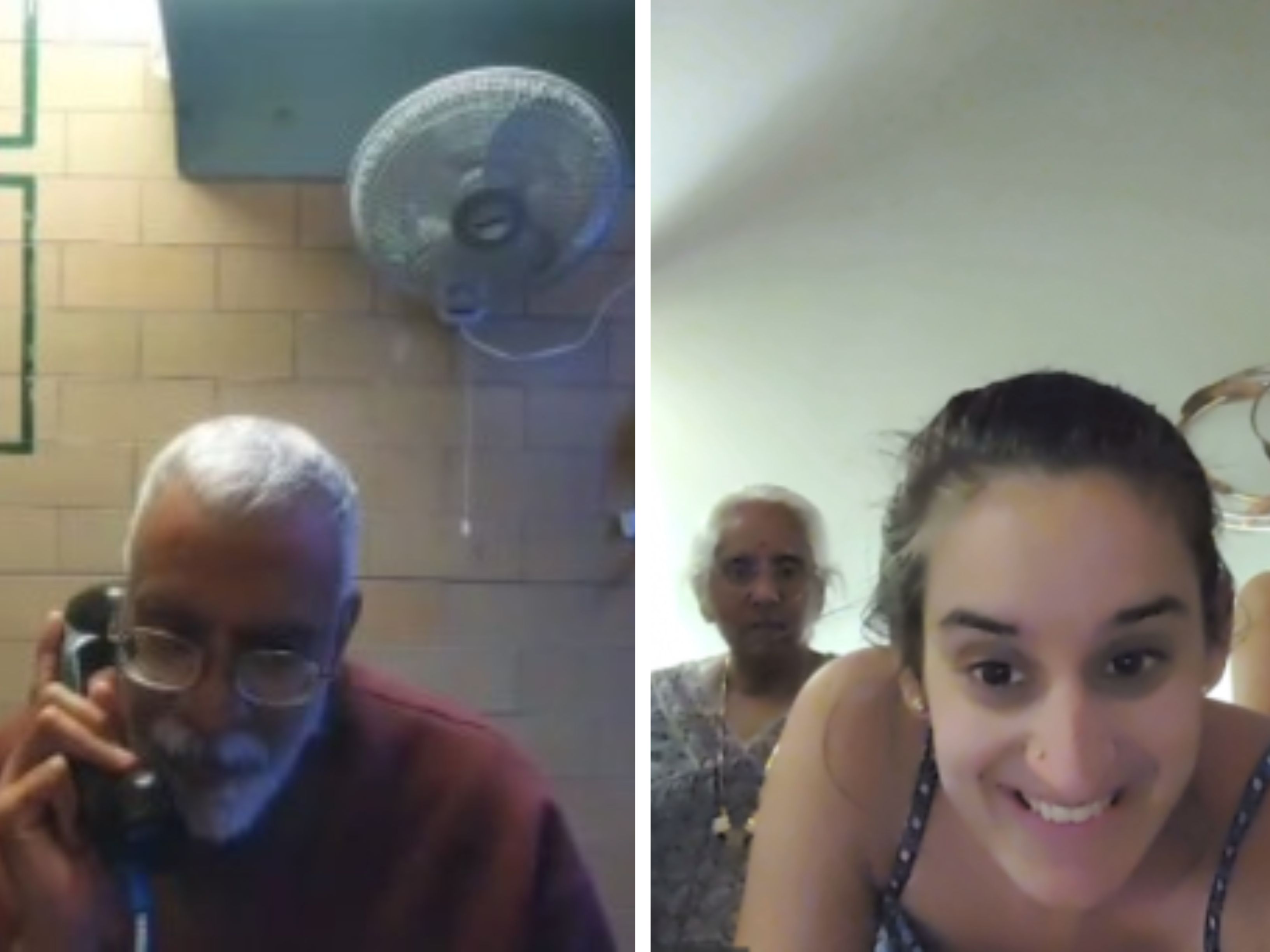 सुब्रमण्यम वेदम अपने परिवार से फोन पर बात करते हुए। / Vedam Family/Penn State