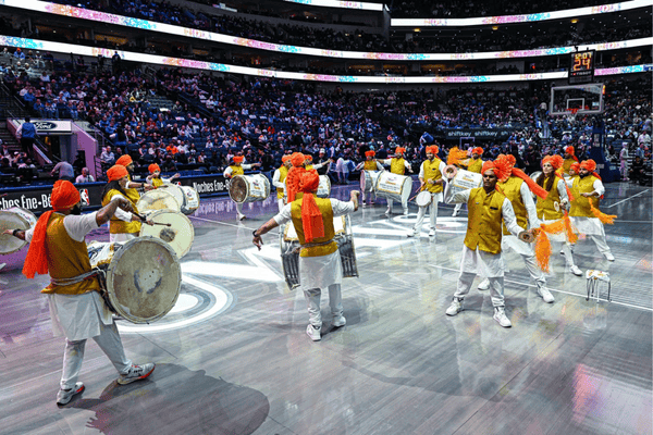 अमेरिकन एयरलाइंस के आइकॉनिक सेंटर में शिवम ढोल ताशा ने जब परफॉर्मेंस दी तो पूरा स्टेडियम भारतीय संस्कृति के रंग में नजर आया।