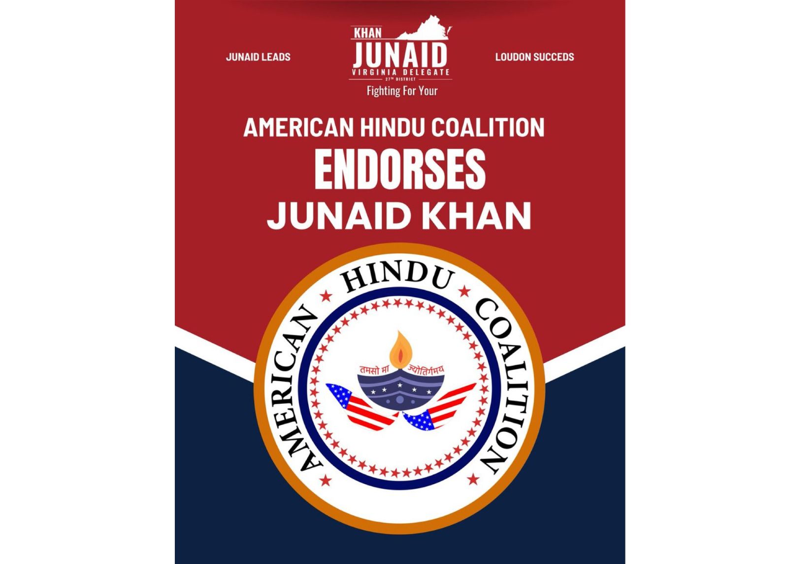 अमेरिकी हिंदू कोलिशन (AHC) ने वर्जीनिया हाउस ऑफ डेलीगेट्स के डिस्ट्रिक्ट 27 से चुनाव लड़ रहे पाकिस्तानी अमेरिकी साइबरसिक्योरिटी विशेषज्ञ जुनैद खान को समर्थन दिया है। यह , एक राइट-लीनिंग हिंदू एडवोकेसी संगठन है। समुदाय के नेताओं का कहना है कि यह एक पहली बार का राजनीतिक कदम है।
