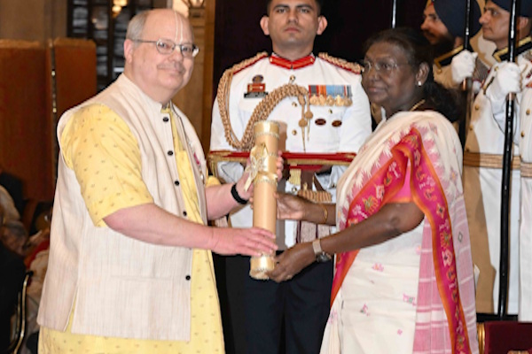 भारत की राष्ट्रपति द्रौपदी मुर्मू के हाथों पद्मश्री सम्मान ग्रहण करते हुए स्टीफन नैप /