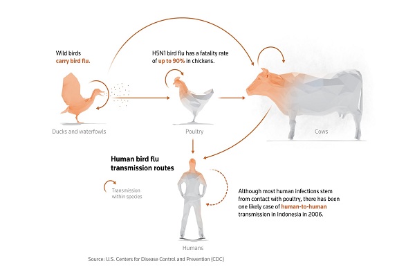 एवियन फ्लू को बर्ड फ्लू भी कहा जाता है। यह पोल्ट्री और डेयरी उद्योग को प्रभावित कर रहा है। इस वायरस के मानव मामले हाल ही में सामने आए हैं। रोग नियंत्रण और रोकथाम केंद्र (CDC) ने एक फार्म कर्मचारी के डेयरी गायों से H5N1 (बर्ड फ्लू) वायरस से संक्रमित होने के दूसरे हालिया मामले की घोषणा की है। कर्मचारी मिशिगन के एक फार्म में काम करता था। टेक्सास में एक डेयरी कर्मचारी को पहले बर्ड फ्लू का पता चला था। इस वर्ष संक्रमित हुए दोनों लोगों में एकमात्र लक्षण कंजंक्टीवाइटिस था। इसे 'गुलाबी आंख' भी कहा जाता है।