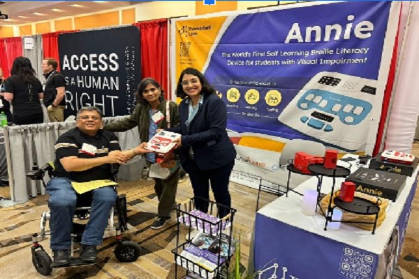 दूसरा उल्लेखनीय प्रदर्शक थिंकरबेल था। VOSAP टीम ने सीईओ संस्कृति धवले से मुलाकात की। उनका उत्पाद एनी अब APH के माध्यम से पूरे अमेरिका में बेचा जाता है। यह स्कूलों में सहायक उपकरणों की आपूर्ति के लिए अमेरिका में एक सुस्थापित भागीदार है।
