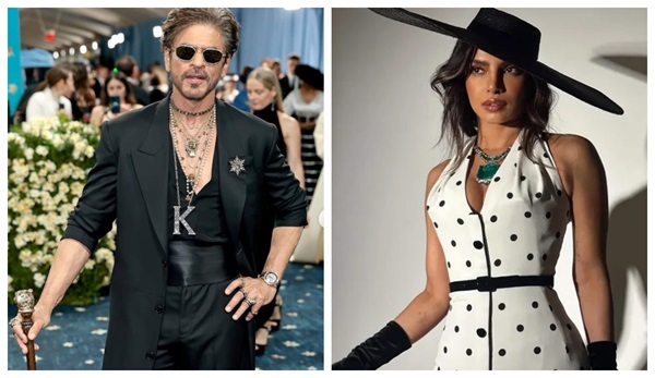 शाहरुख खान और दिलजीत दोसांझ से लेकर कियारा आडवाणी और प्रियंका चोपड़ा जोनास तक, इस साल के मेट गाला में भारतीयों की खासियतें यहां हैं। मेट गाला में अपने बहुप्रतीक्षित डेब्यू के साथ, बॉलीवुड सुपरस्टार ने सब्यसाची मुखर्जी द्वारा डिज़ाइन किए गए काले रंग के ट्राउज़र के ऊपर कस्टम ब्लैक सिल्क शेरवानी-स्टाइल जैकेट में 'ब्लू कार्पेट' की शोभा बढ़ाई। उनके पहनावे को कई परतों वाले हार से सजाया गया था, जिसमें ‘K’ अक्षर का एक आकर्षक हीरे का पेंडेंट भी शामिल था, जो उनके उपनाम “किंग खान” को दर्शाता है।