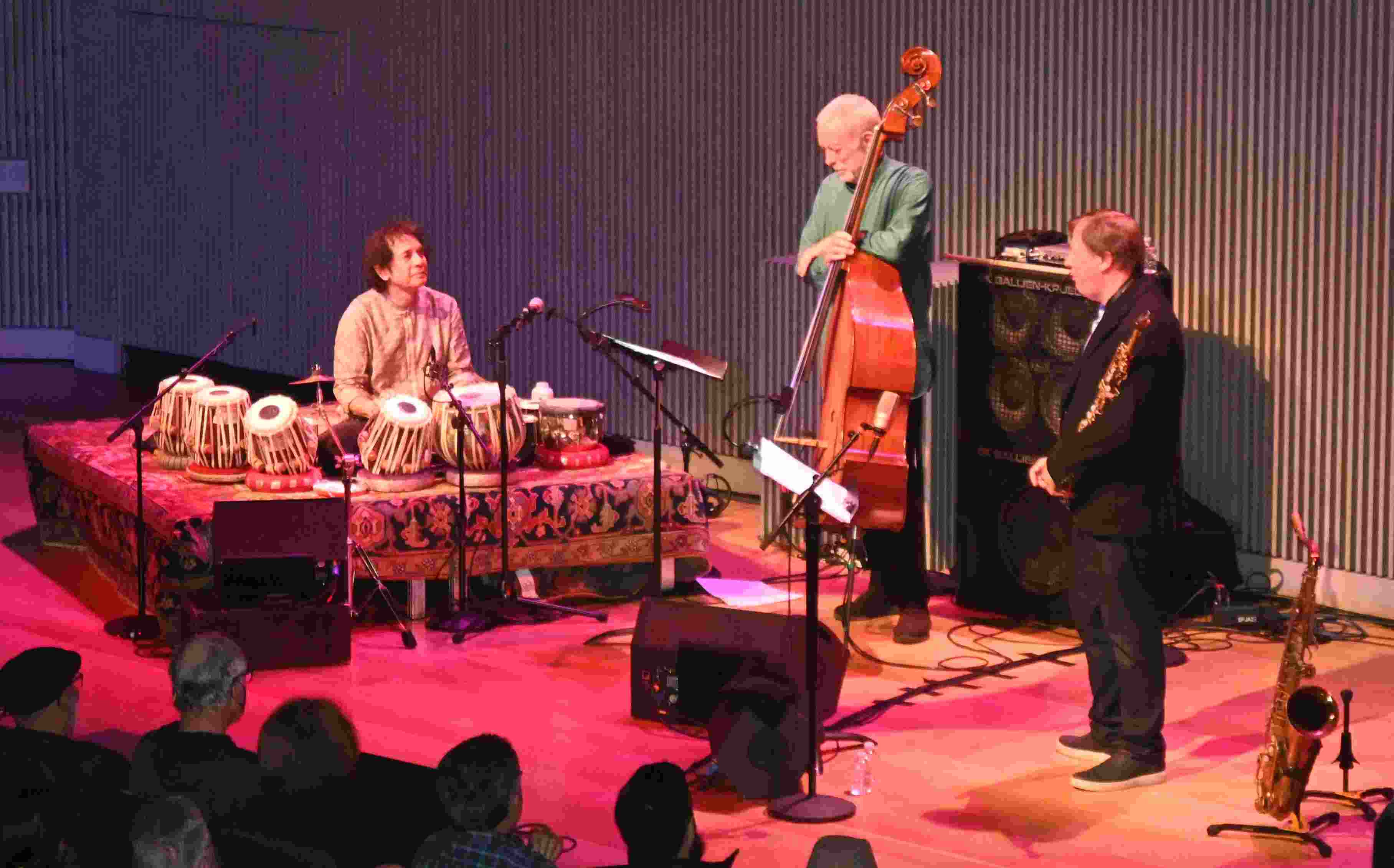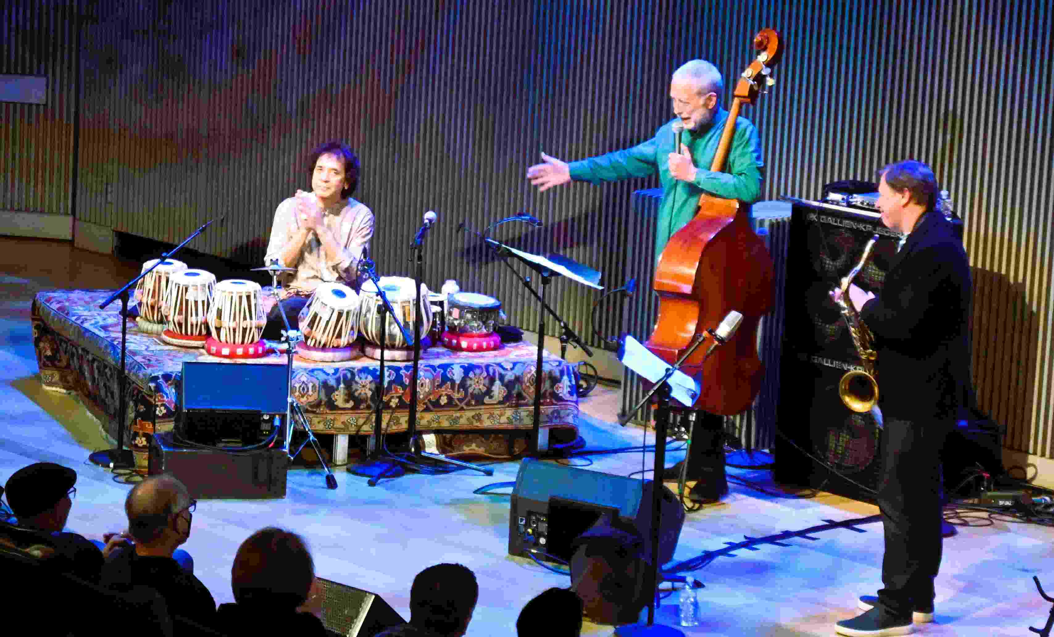 एसएफ जैज़ में डेव हॉलैंड और क्रिस पॉटर के साथ प्रस्तुति देते जाकिर हुसैन। / Image : NIA