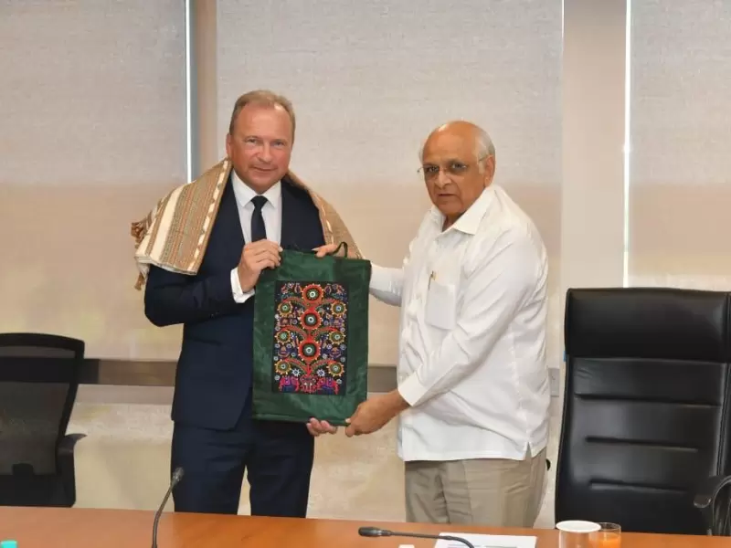 गुजरात के मुख्यमंत्री भूपेंद्र पटेल और लक्जमबर्ग के वित्त मंत्री गिल्स रोथ / IANS
