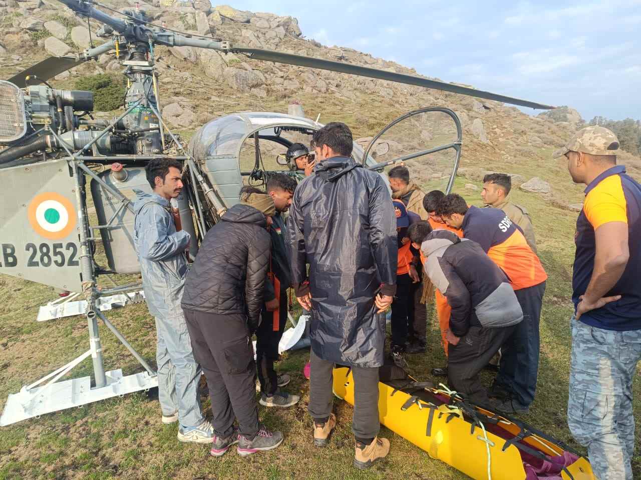 IAF airlifted the woman trekker successfully from the treacherous terrain of Teesri village… pic.twitter.com/mFoUxhQKo9