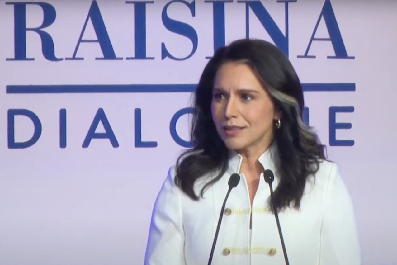 रायसीना डायलॉग 2025 में संबोधित करते हुए अमेरिकी राष्ट्रीय खुफिया निदेशक तुलसी गैबार्ड / स्क्रीनशॉट/ऑब्जर्वर रिसर्च फाउंडेशन