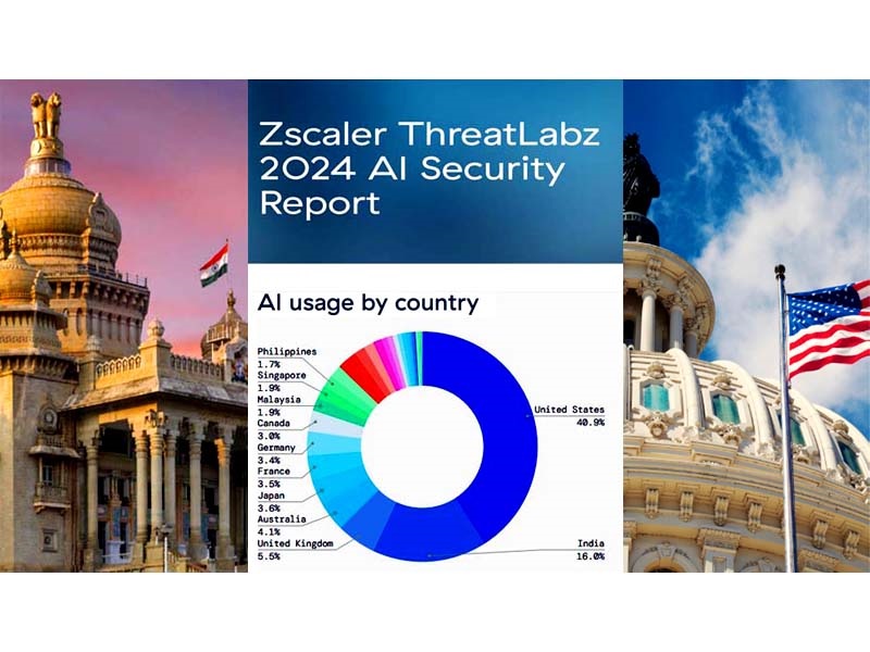सैन जोस (कैलिफोर्निया, अमेरिका) स्थित क्लाउड सिक्योरिटी कंपनी Zscaler ने अपनी सालाना AI सुरक्षा रिपोर्ट का 2024 संस्करण जारी किया है। इसमें पाया गया है कि अमेरिका और भारत आर्टिफिशियल इंटेलिजेंस में दुनिया का सबसे अधिक ट्रैफिक उत्पन्न कर रहे हैं, जो क्रमशः 40.9% और 16% है। वहीं, यूके 5.5%, ऑस्ट्रेलिया (4.1%) और जापान (3.6%) के साथ दुनिया के शीर्ष पांच AI यूजर्स में शामिल है।