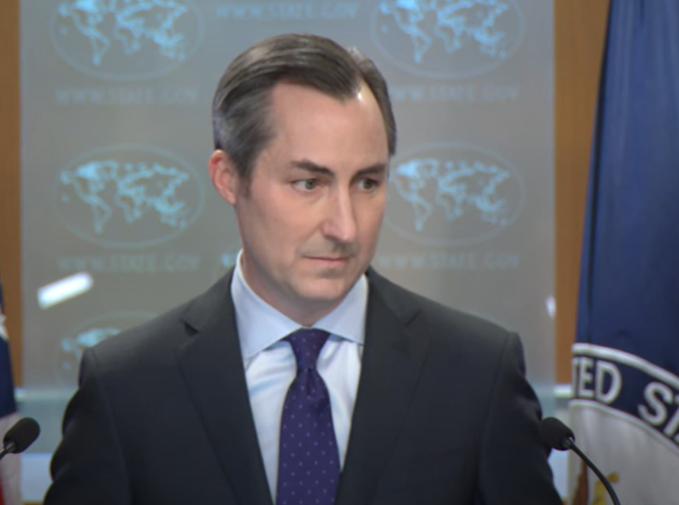 विदेश मंत्रालय के प्रवक्ता मैथ्यू मिलर ने वाशिंगटन डीसी में नियमित प्रेस कॉन्फ्रेंस में कहा कि हमने हमेशा बातचीत पर जोर दिया है। / State Department