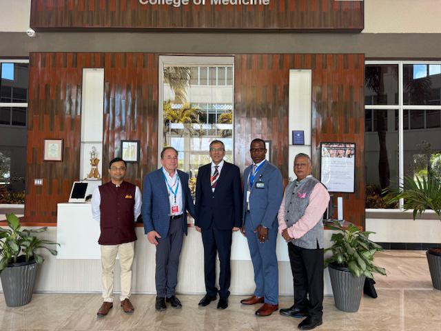 गुयाना में भारत के उच्चायुक्त डॉ. अमित तेलंग, AUA के निवर्तमान अध्यक्ष नील साइमन, भारत के विदेश मंत्रालय के उप मंत्री पवन कपूर, AUA के वरिष्ठ उपाध्यक्ष और सीओओ वर्नन सोलोमन और एंटीगुआ और बारबुडा में भारत के महावाणिज्य दूत विजय तिवारी। (बाएं से दाएं) / Courtesy Photo