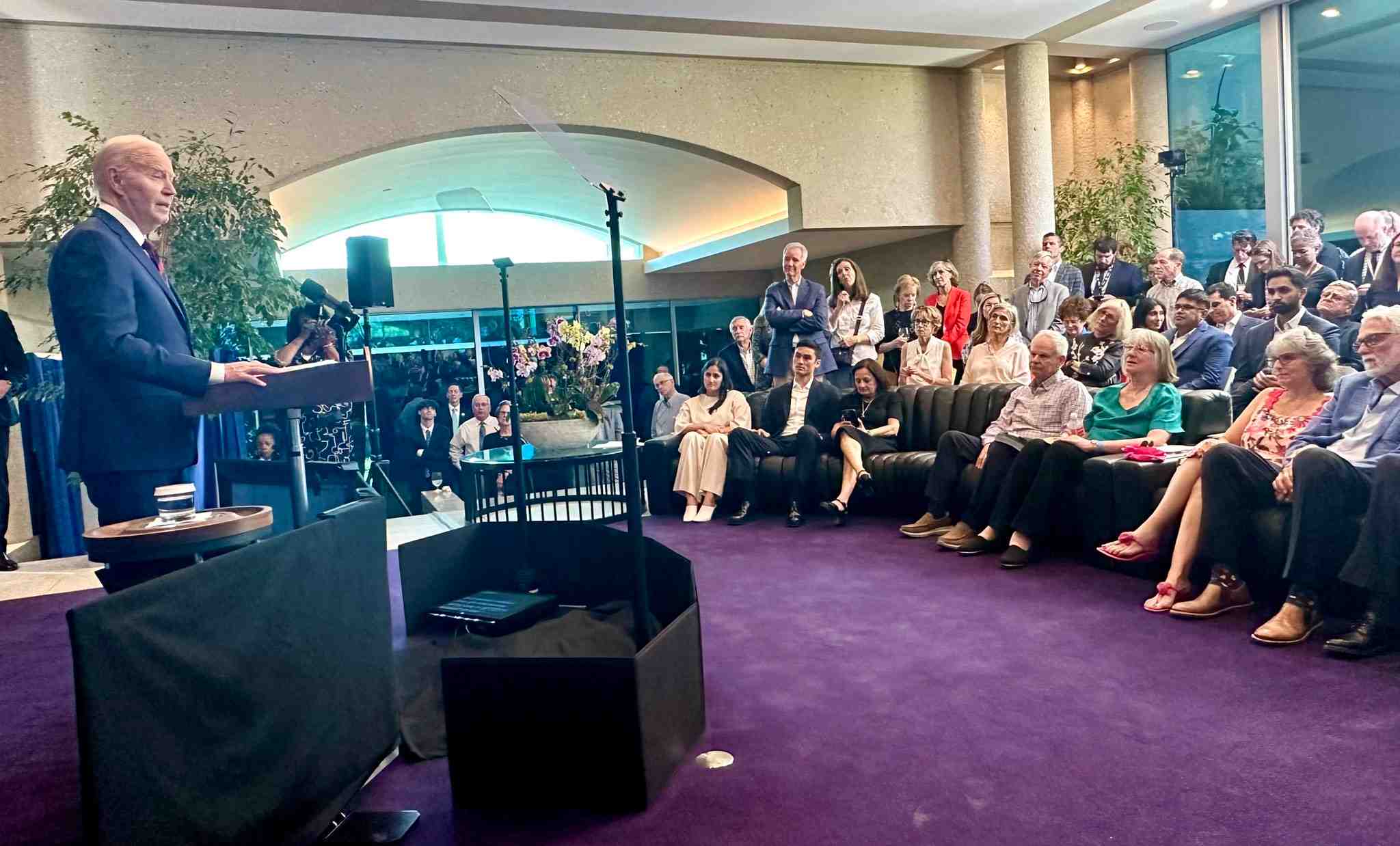 विनोद खोसला के आवास पर आयोजित कार्यक्रम को संबोधित करते राष्ट्रपति बाइडेन। / तस्वीर साभार सोशल मीडिया