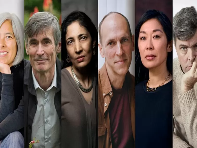 बुकर पुरस्कार 2025 के लिए चयनित लेखक (बाएं से) सुसान चोई, एंड्रयू मिलर, किरण देसाई, बेन मार्कोविट्स, केटी कितामुरा, डेविड स्जाले / Courtesy Photo