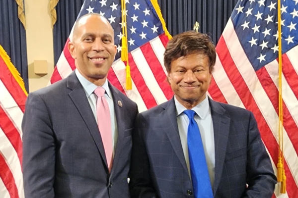 भारतीय-अमेरिकी कांग्रेस सदस्य श्री थानेदार और प्रतिनिधि सभा के नेता हकीम जेफ्रीज़। / Image provided