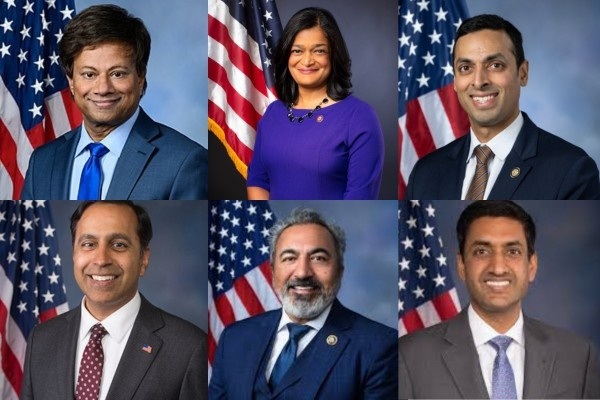 (बाएं से दाएं ऊपर) श्री थानेदार, प्रमिला जयपाल, सुहास सुब्रमण्यम। (बाएं से दाएं नीचे) राजा कृष्णमूर्ति, अमी बेरा, रो खन्ना। / Courtesy Photo