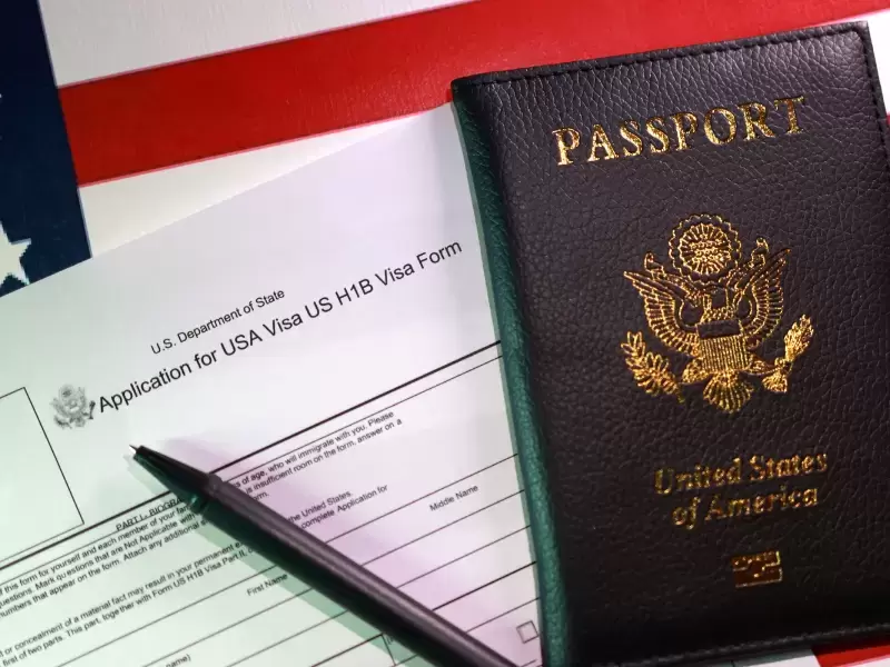 अमेरिकी ध्वज, एक पासपोर्ट और एक अमेरिकी एच-1बी वीजा आवेदन पत्र / REUTERS/Dado Ruvic/Illustration