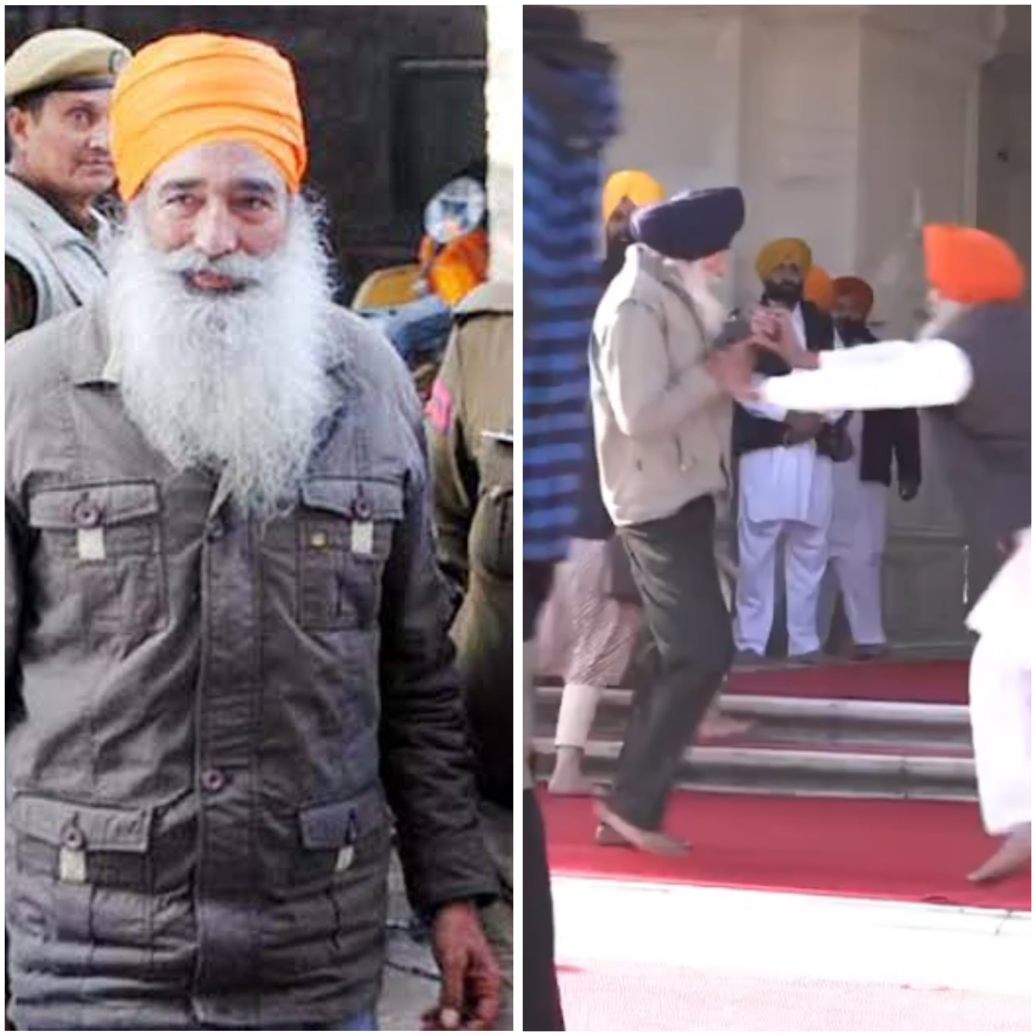 स्वर्ण मंदिर में सुखबीर सिंह बादल पर हमले के आरोप में नारायण सिंह चौरा गिरफ्तार। / X/@Gagan4344