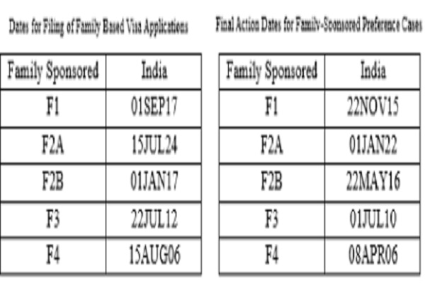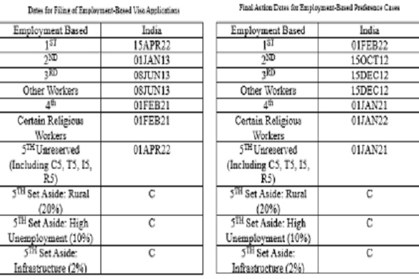 अमेरिकी विदेश विभाग (DOS) अपने वीजा बुलेटिन में वर्तमान अप्रवासी वीजा उपलब्धता की जानकारी प्रकाशित करता है। वीजा बुलेटिन दिखाता है कि आप्रवासी वीजा उनकी व्यक्तिगत प्राथमिकता तिथियों के आधार पर संभावित आप्रवासियों को जारी करने के लिए कब उपलब्ध हैं। हर महीने DOS अपने वीजा बुलेटिन पर प्रति वीजा वरीयता श्रेणी के लिए दो चार्ट प्रकाशित करता है। चार्ट आवेदन की अंतिम तिथियों और आवेदन दाखिल करने की तारीखों पर आधारित हैं। अंतिम कार्रवाई तिथि चार्ट उन तिथियों को दर्शाता है जब वीजा अंततः जारी किया जा सकता है और आवेदन दाखिल करने की तिथियां प्रारंभिक तिथियों को दर्शाती हैं जब आवेदन किया जा सकता है।