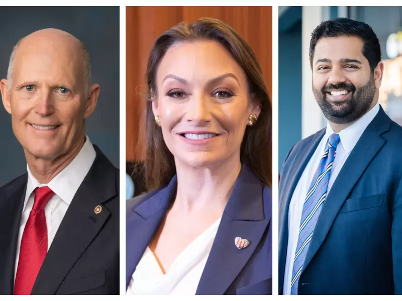 रिपब्लिकन नेता और फ्लोरिडा के सीनेटर रिक स्कॉट, फ्लोरिडा डेमोक्रेटिक पार्टी की अध्यक्ष निक्की फ्राइड और डेमोक्रेट ऋषि बग्गा। / Courtesy