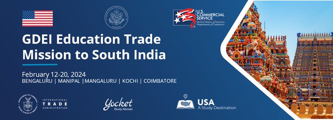 साल 2024 के पहले ग्लोबल डायवर्सिटी एक्सपोर्ट इनिशिएटिव ट्रेड मिशन के तहत अमेरिकी सरकार का इंटरनेशनल ट्रेड एडमिनिस्ट्रेशन विभाग एक बड़े शैक्षिक प्रतिनिधिमंडल के साथ दक्षिण भारत का दौरा करेगा। इस दल में अमेरिका के 18 उच्च शिक्षा संस्थानों के प्रतिनिधि शामिल होंगे। ये प्रतिनिधिमंडल 20 फरवरी तक दक्षिणी भारत में बेंगलुरू, मणिपाल, मंगलुरू, कोच्चि और कोयंबटूर जैसे शहरों का दौरा करेगा। इन प्रतिनिधिमंडल में चार अल्पसंख्यक संस्थानों के प्रतिनिधि भी होंगे। यह पहली बार है, जब आईटीए ट्रेड मिशन के तहत मणिपाल, मंगलुरू, कोच्चि और कोयंबटूर का दौरा कर रहा है।