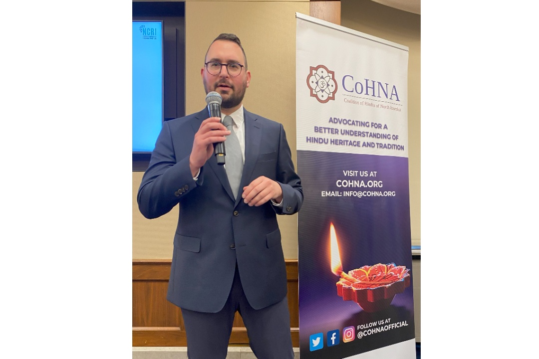 नेटवर्क कॉन्टेजियन रिसर्च इंस्टीट्यूट (NCRI) में रिसर्च फेलो आरोन ग्रोस ने CoHNA के तीसरे हिंदू एडवोकेसी डे में भाग लिया। / @CoHNACanada