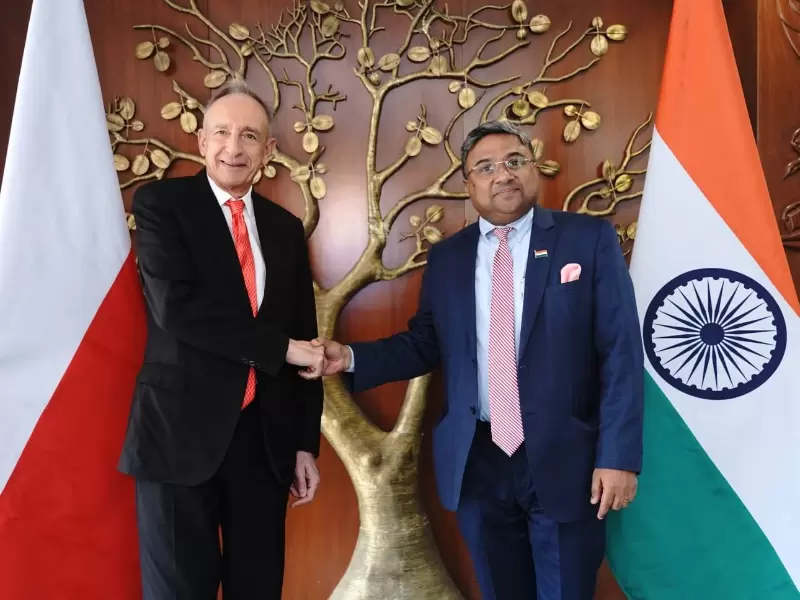 भारत के विदेश मंत्रालय (MEA) के सचिव (पश्चिम) सिबी जॉर्ज ने गुरुवार को नई दिल्ली में पोलैंड के विदेश मामलों के सचिव व्लादिस्लाव टी. बार्टोशेव्स्की से मुलाकात की। बैठक में द्विपक्षीय रणनीतिक साझेदारी की समीक्षा की गई और दोनों देशों के बीच 2024-2028 के लिए निर्धारित कार्य योजना के मुख्य निष्पादन बिंदुओं पर चर्चा हुई।