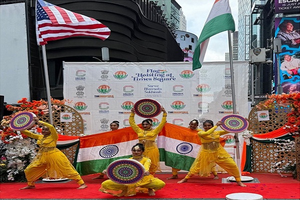 टाइम स्क्वायर पर लोगों के हुजूम के बीच रंगारंग कार्यक्रम के साथ भारतीय तिरंगा फहराया गया और परेड निकाली गई। परेड में भारतीय संस्कृति के कलात्मक रंग सभी को भा रहे थे।