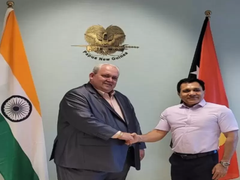 पापुआ न्यू गिनी में भारत के उच्चायुक्त राजीव कुमार ने बुधवार को देश के विदेश मंत्री जस्टिन तकाचेंको से मुलाकात की, जिसमें दोनों पक्षों ने आपसी रिश्तों को मजबूत करने पर चर्चा की। पापुआ न्यू गिनी (पीएनजी) में भारतीय उच्चायोग ने सोशल मीडिया प्लेटफॉर्म एक्स पोस्ट के जरिए इसकी जानकारी दी। उन्होंने कहा, "पापुआ न्यू गिनी में भारतीय उच्चायुक्त राजीव कुमार ने विदेश मंत्री जस्टिन टकाचेंको से मुलाकात की ताकि द्विपक्षीय संबंधों को मजबूत करने और आपसी सहयोग के क्षेत्रों को आगे बढ़ाने पर चर्चा की जा सके।"