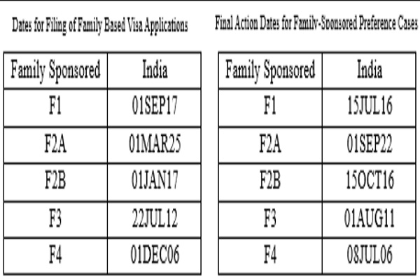 - परिवार-आधारित चतुर्थ वरीयता श्रेणी (F4) - वयस्क अमेरिकी नागरिकों के भाई और बहनें): भारत की वीज़ा कट-ऑफ तिथि 8 जुलाई, 2006 ही रहेगी