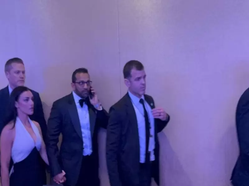 गोलीबारी के दौरान ही राष्ट्रपति ट्रंप और उनकी पत्नी मेलानिया को सुरक्षित बाहर निकाल लिया गया। इस चित्र में FBI निदेशक काश पटेल दिख रहे हैं जो हादसे के बाद बाहर निकल रहे हैं। / IANS