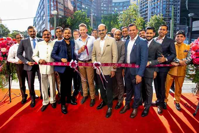 सिडनी में जूलरी शोरूम का उद्घाटन मशहूर क्रिकेटर ब्रेट ली ने किया। / X @AusDHCIndia