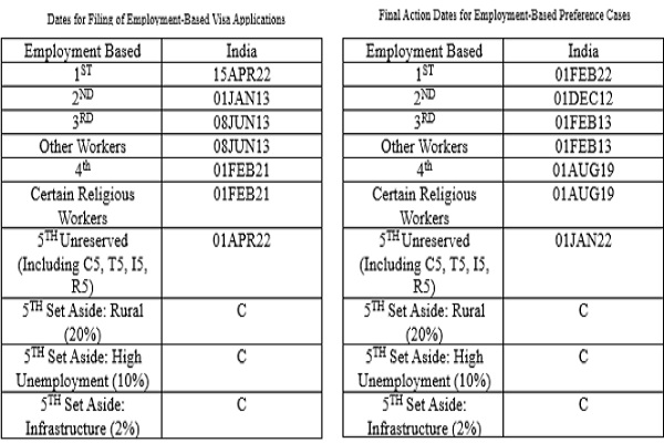 USCIS ने स्थिति अनुप्रयोगों के रोजगार-आधारित समायोजन के लिए अंतिम कार्रवाई तिथियों का उपयोग जारी रखने का निर्णय लिया है। इसके अलावा USCIS ने परिवार-प्रायोजित समायोजन स्थिति आवेदन तालिका के लिए दाखिल करने की तारीखों का पालन करना जारी रखने का भी निर्णय लिया है जबकि मार्च 2025 वीजा बुलेटिन दुनिया भर में व्यक्तियों के लिए आवाजाही की तारीखों को दर्शाता है, हम यहां विशेष रूप से उन तारीखों पर ध्यान केंद्रित करेंगे जो भारतीय नागरिकों को प्रभावित करती हैं।