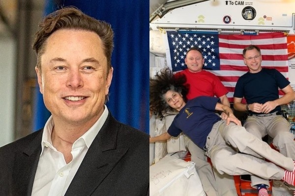 इलॉन मस्क और अंतरिक्ष में फंसे यात्री। / Wikipedia/NASA