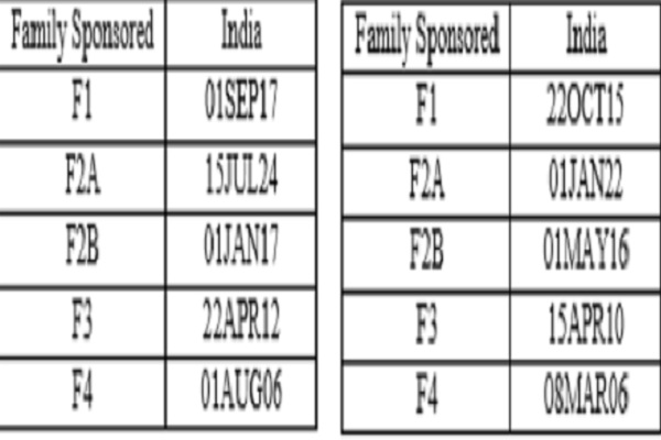 परिवार आधारित वीजा के लिए आवेदन की तारीखें..... परिवार प्रायोजित प्राथमिकता केसों की फाइनल एक्शन तारीख / DOSभारतीय नागरिकों के लिए विशिष्ट रोजगार-प्रायोजित प्राथमिकता मामले