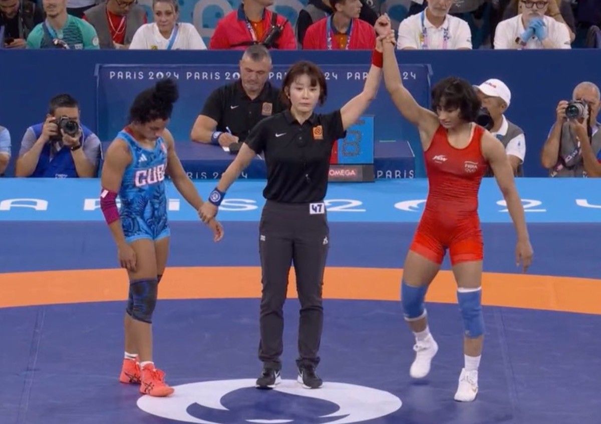 भारतीय पहलवान विनेश फोगाट ने क्यूबा की युसनेलिस गुज़मैन लोपेज को हराकर फाइनल में जगह बनाई थी। / x @WeAreTeamIndia