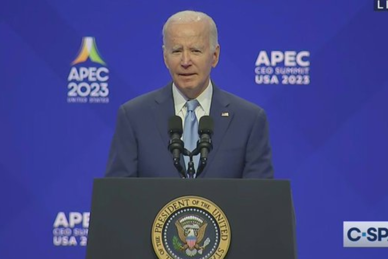 एपीईसी सीईओ के शिखर सम्मेलन में राष्ट्रपति बाइडेन। /