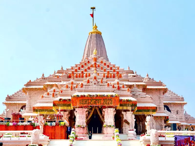 अयोध्या के राम मंदिर में मंगलवार को ध्वजारोहण के साथ निर्माण कार्य का अंतिम चरण पूरा हो गया। प्रधानमंत्री नरेंद्र मोदी ने 161 फुट ऊंचे शिखर पर 22×11 फुट का भगवा ध्वज फहराया जिसे मंदिर की पूर्णता और उसके आधिकारिक रूप से ‘सक्रिय’ होने का पारंपरिक प्रतीक माना जाता है। यह कार्यक्रम विवाह पंचमी और अभिजीत मुहूर्त में आयोजित किया गया जहां बड़ी संख्या में श्रद्धालु मौजूद थे।