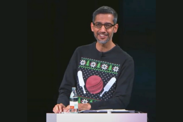 गूगल के भारतीय मूल के सीईओ सुंदर पिचाई एक अनोखा क्रिकेट थीम वाला स्वेटर पहनकर फेस्टिवल की मस्ती को बढ़ाते नजर आए। उन्होंने क्रिकेट बैट, बॉल, क्रिसमस ट्री और बर्फ के टुकड़े वाला एक काला स्वेटर पहना था।