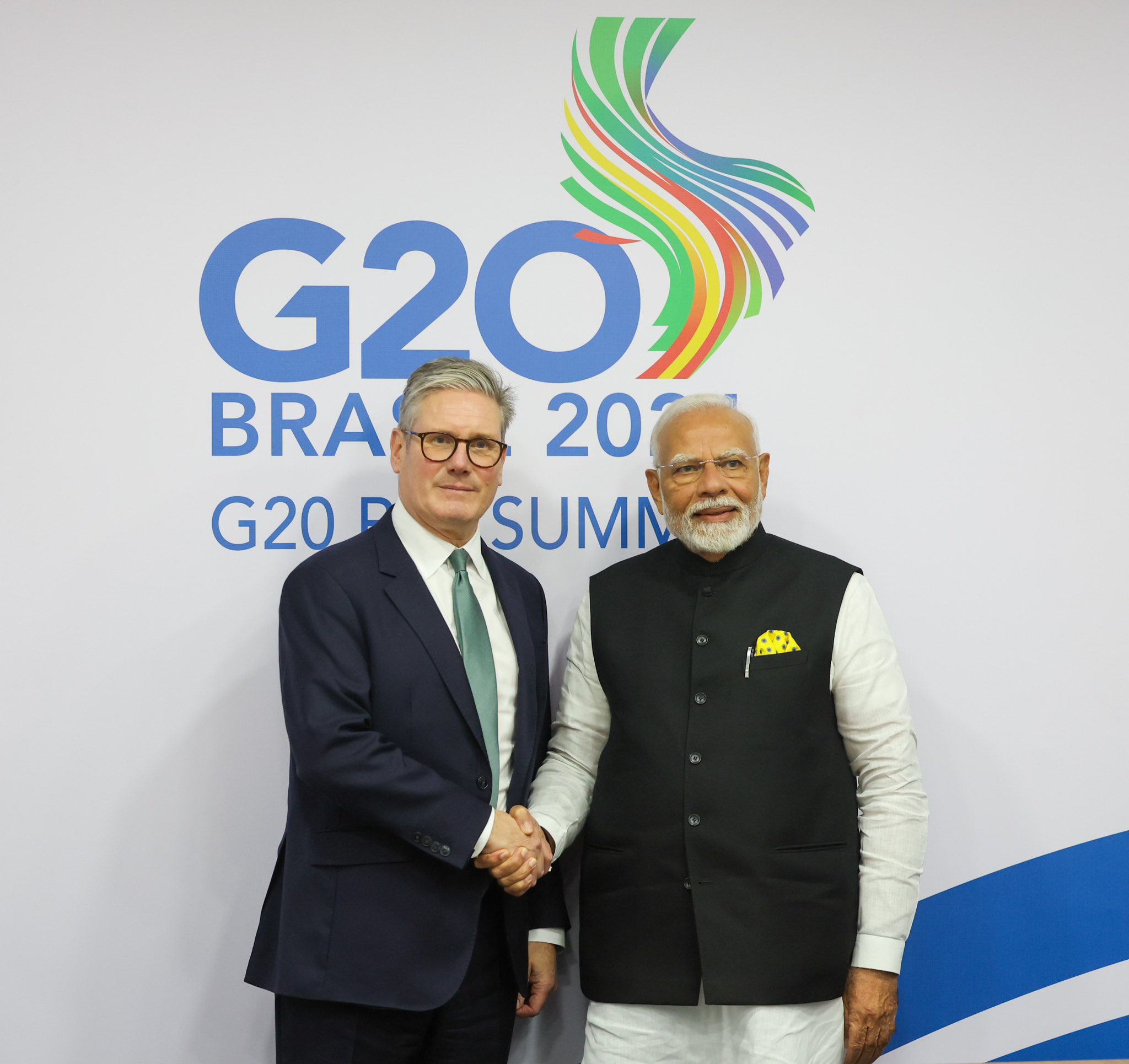ब्राजील के रियो दि जनेरियो में G20 शिखर सम्मेलन के दौरान भारत के प्रधानमंत्री नरेंद्र मोदी की मुलाकात ब्रिटेन के पीएम कीर स्टार्मर से हुई। पदभार ग्रहण करने के बाद यह दोनों नेताओं की पहली मुलाकात है। दोनों देशों के बीच बढ़ रहे द्विपक्षीय आर्थिक और व्यापारिक संबंधों को देखते हुए प्रधानमंत्री मोदी ने यूके में बेलफास्ट और मैनचेस्टर में भारत के दो नए महावाणिज्य दूतावास खोलने की घोषणा की। प्रधानमंत्री स्टार्मर ने इस घोषणा का स्वागत किया।