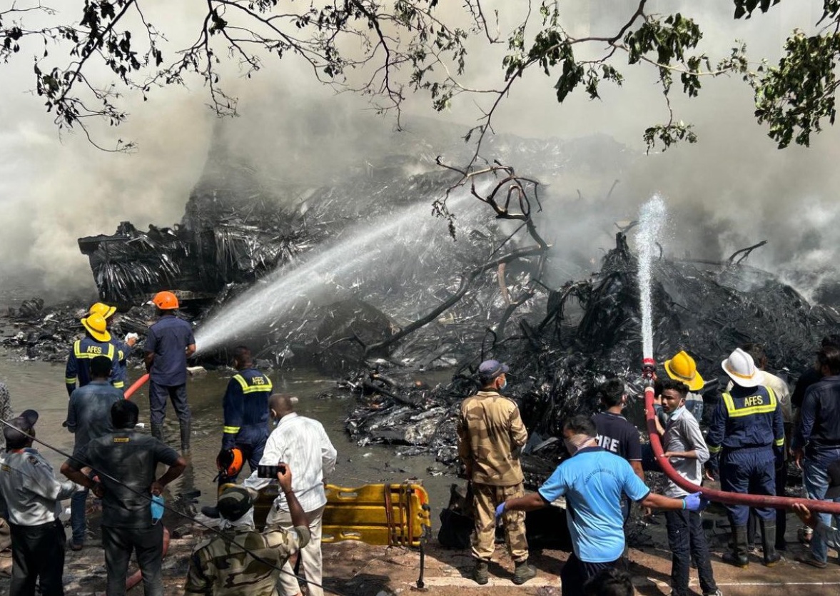 अहमदाबाद विमान हादसे के बाद घटनास्थल की तस्वीर। /