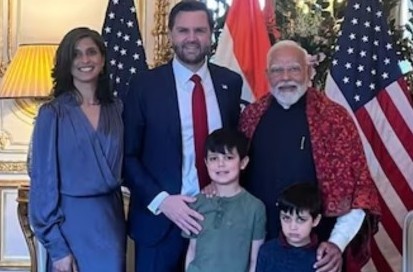 जेडी वेंस और उनका परिवार पीएम नरेंद्र मोदी के साथ। / File Image- X