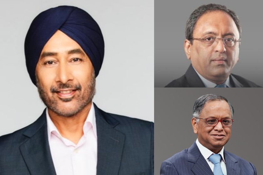 परमिंदर सिंह, एसएन सुब्रह्मण्यन और नारायण मूर्ति। / X/@parrysingh, Website-ltimindtree.com; infosys.com