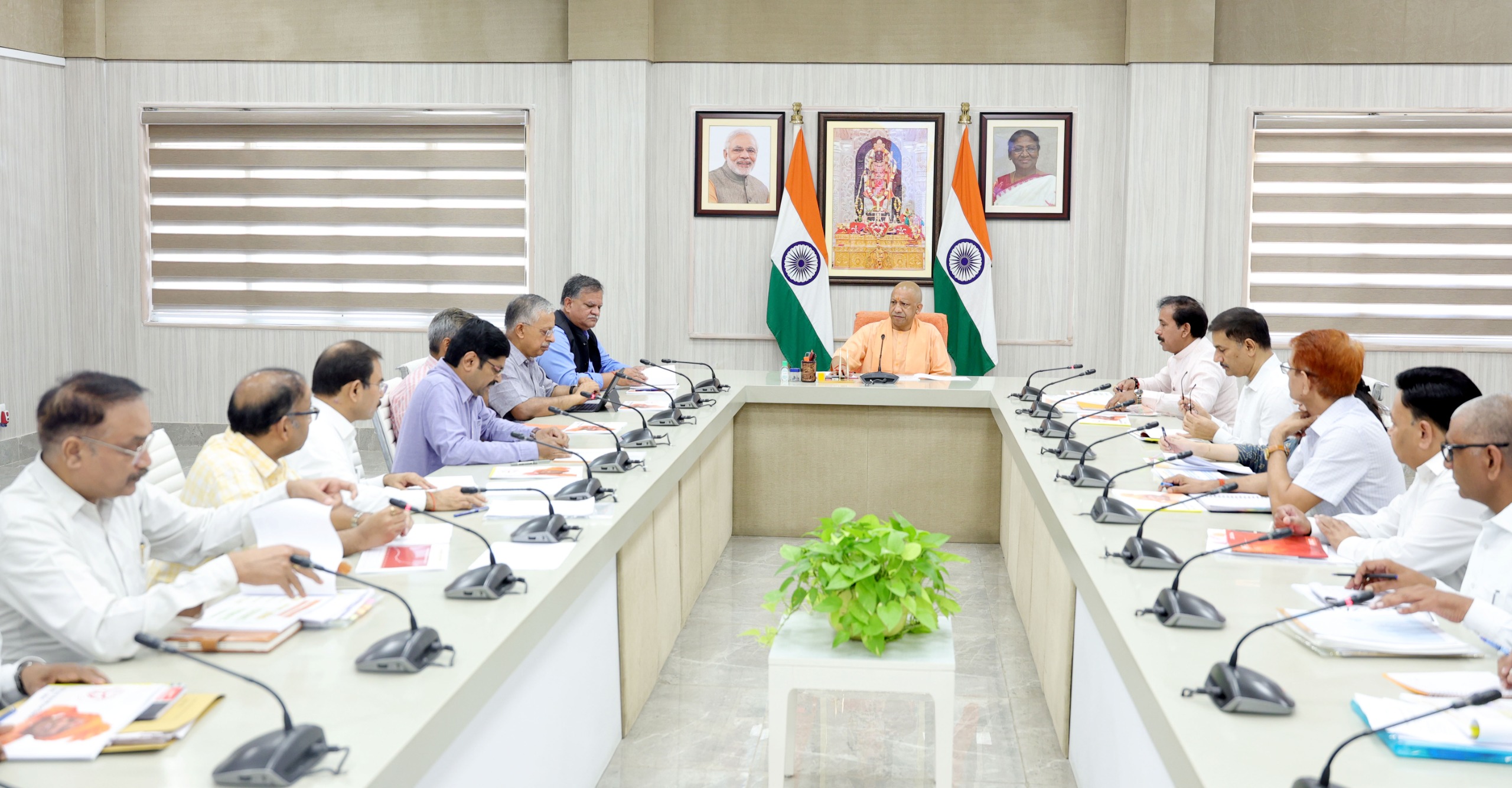 यूपी सीएम योगी आदित्यनाथ अधिकारियों संग मीटिंग करते हुए / X/@CMOfficeUP