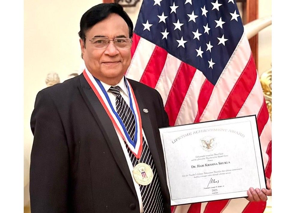 ट्रिपल बोर्ड सर्टिफाइड डॉ. हरि कृष्ण शुक्ला को तत्कालीन राष्ट्रपति जो बाइडेन की तरफ से लाइफटाइम अचीवमेंट पुरस्कार से सम्मानित किया गया है। शुक्ला अमेरिकन बोर्ड ऑफ पीडियाट्रिक्स, नियोनेटल पेरिनाटल मेडिसिन एंड फोरेंसिक मेडिसिन के डॉक्टर हैं।