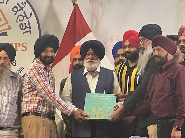 पूर्व सांसद गुरबक्श सिंह मल्ही और दलबीर सिंह कथूरिया सुरिंदरपाल सिंह ओबेरॉय को सम्मानित करते हुए। / Prabhjot Singh