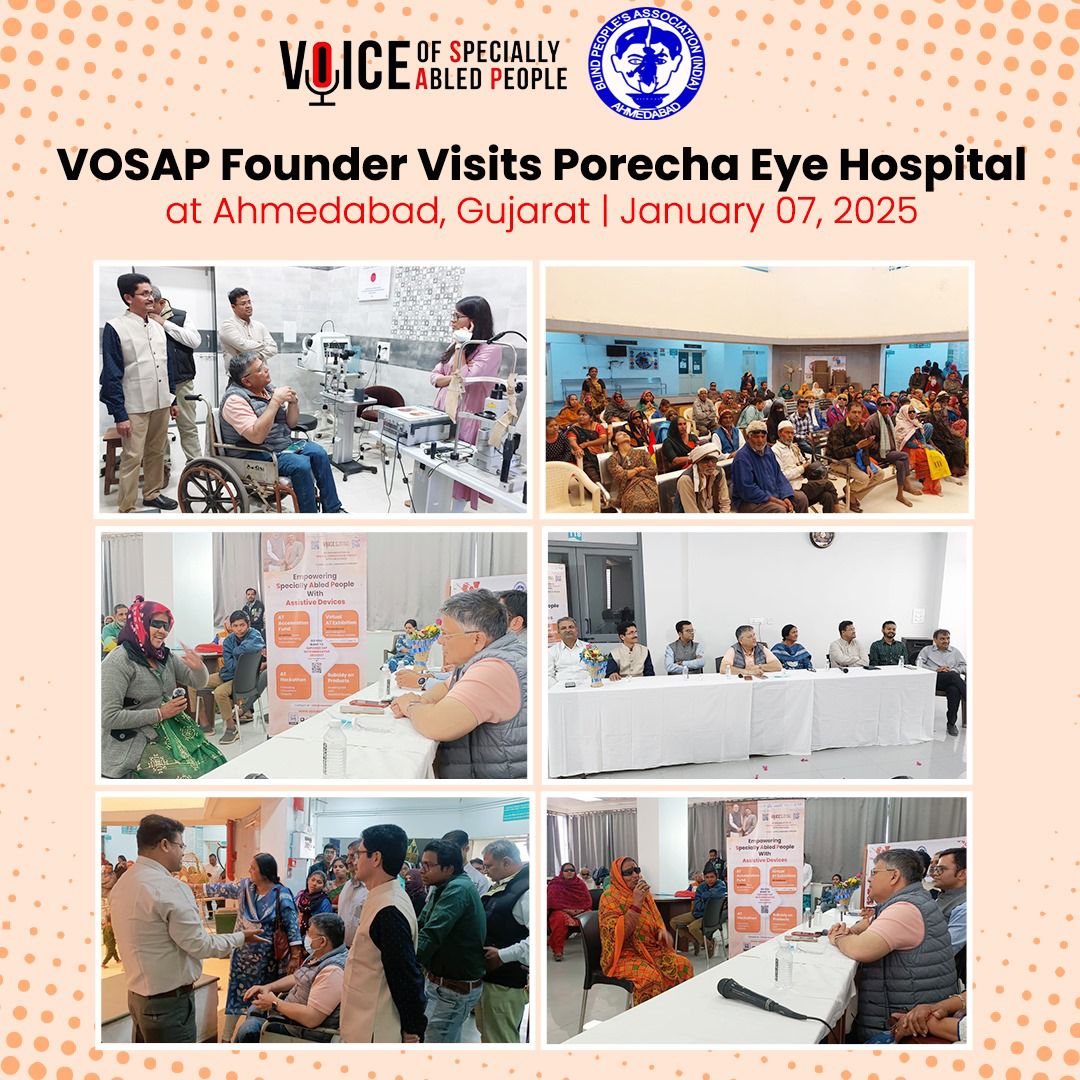 पोरेचा नेत्र अस्पताल में VOSAP के संस्थापक और उनकी टीम ने कई लोगों से बात की जिन्हें फ्री कॉर्निया ट्रांसप्लांट मिला था। उन्होंने आधुनिक मशीनों के बारे में जाना, जिनसे कॉर्निया और रेटिना की जांच और ऑपरेशन होते हैं। आई बैंक के काम से लोगों की जिंदगी कैसे बदल रही है, ये भी समझा। टीम गुजरात के आनंदधाम (अद्रोड़ा गांव) गई, जहां 90 बौद्धिक रूप से दिव्यांग वयस्क रहते हैं और सम्मान से अपनी जिंदगी जीते हैं। मुलाकात के दौरान गाने-बजाने और नाचने-गाने का माहौल था।